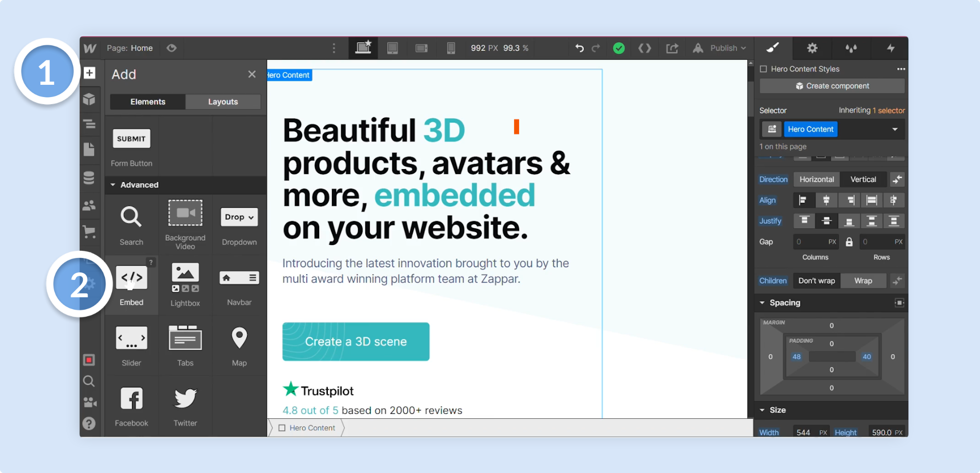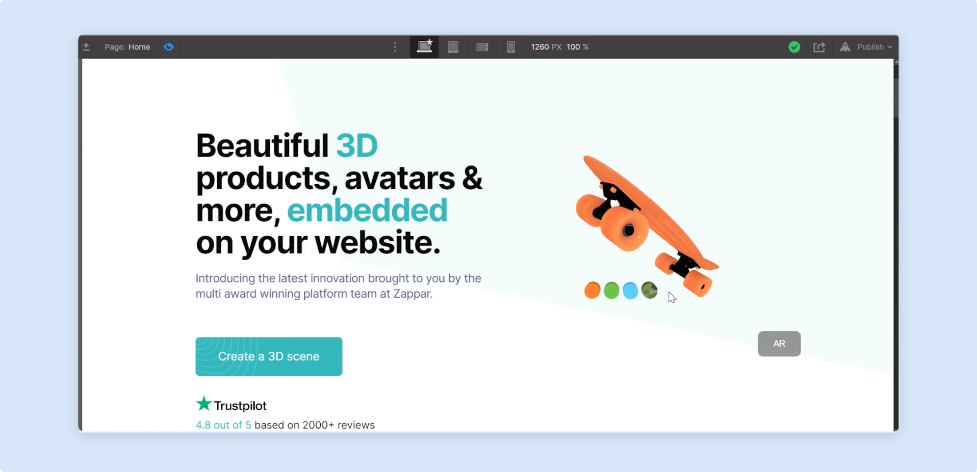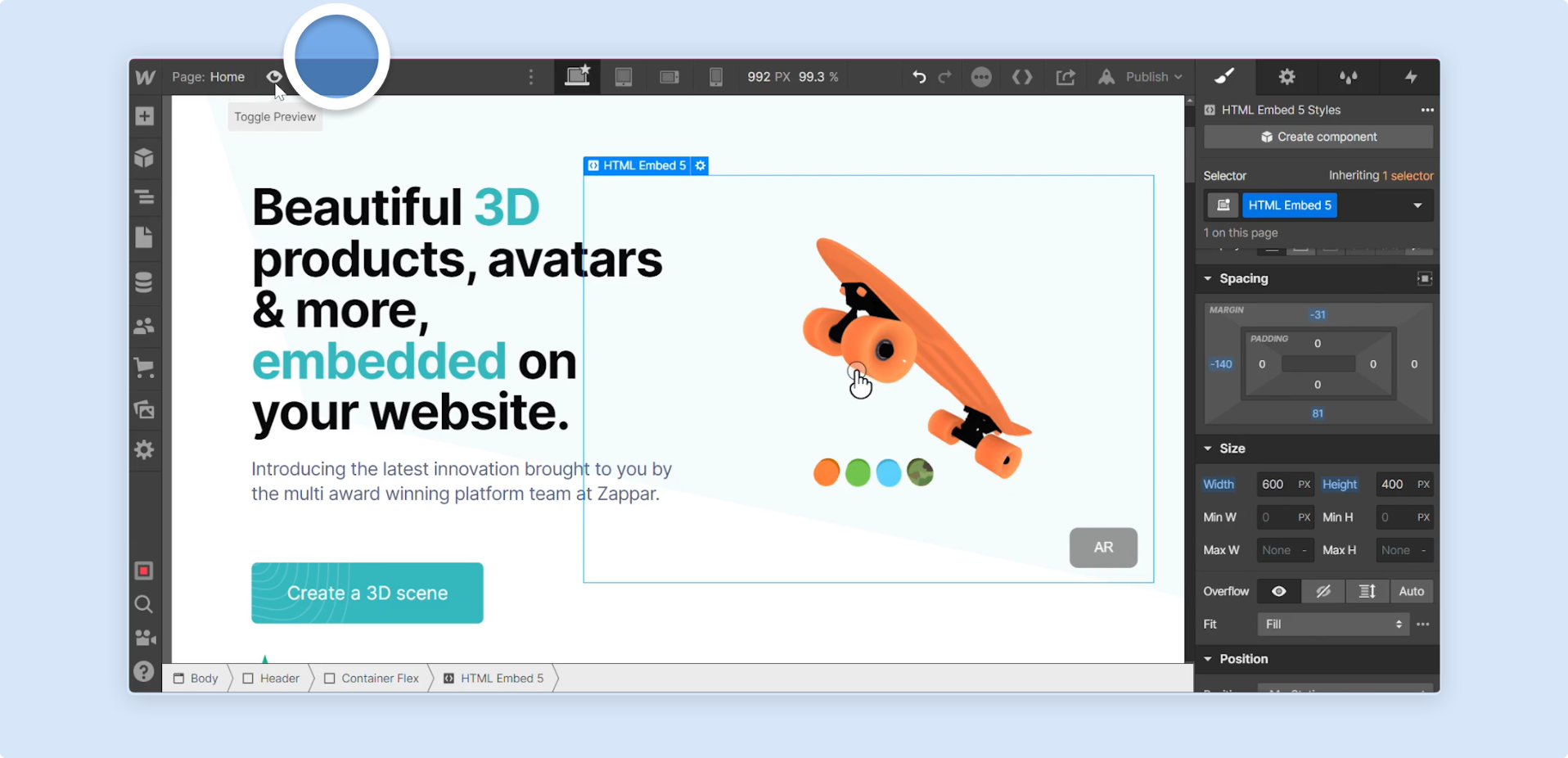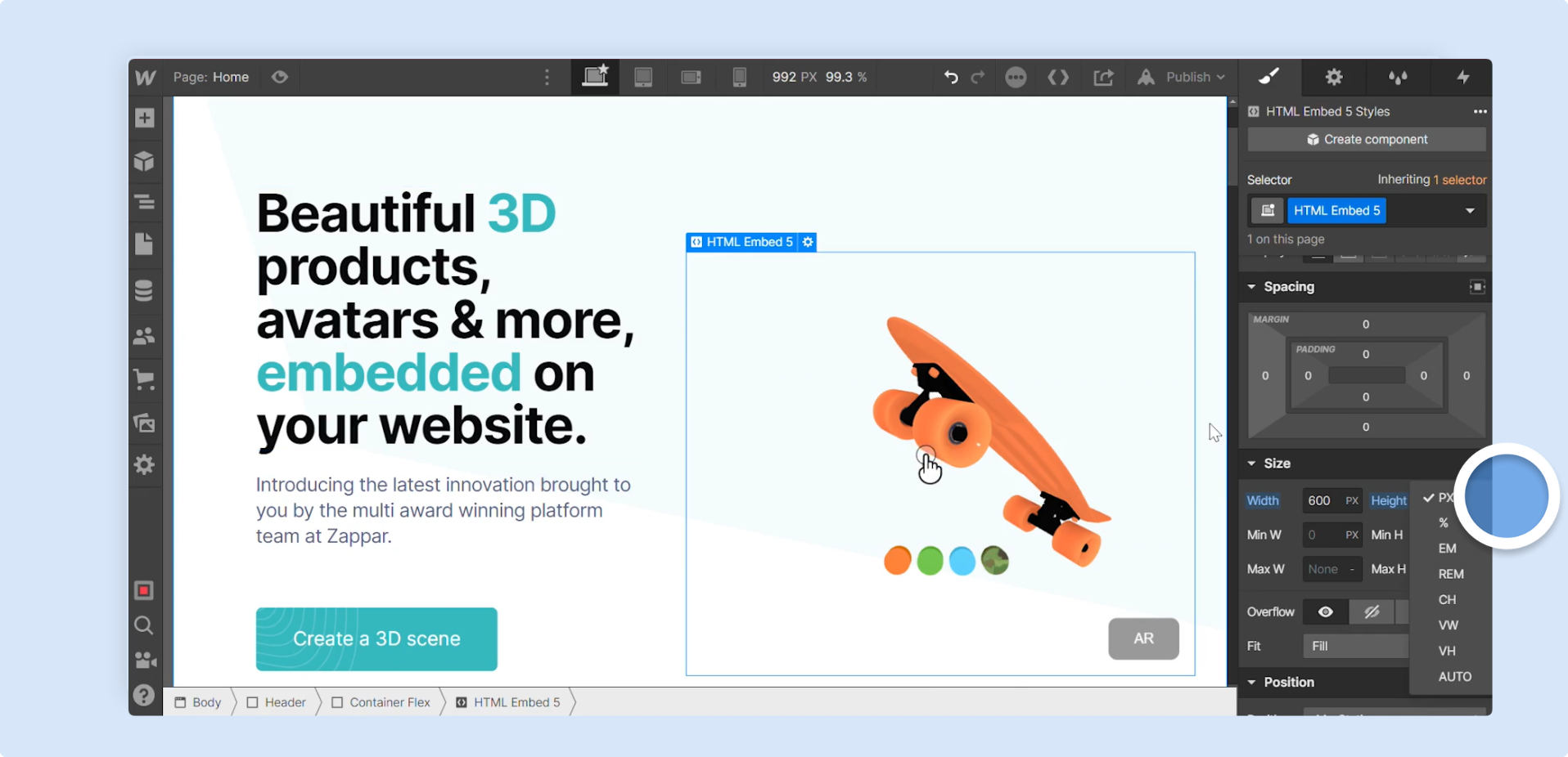 That is how quick and easy it is to embed your Designer project into WebFlow using AR Web Embed.