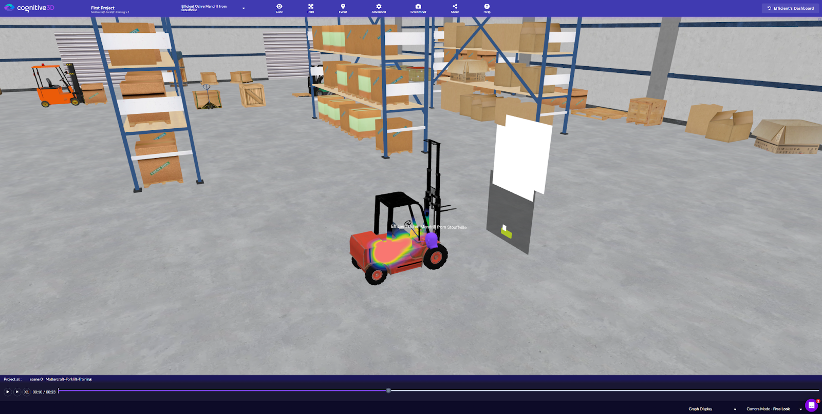 Section titled “Dynamic objects on attachment points (children of GLB files)”Cognitive3D does not support animations, but you can still track the transforms of individual components within an animated object (e.g. a moving part on a forklift).