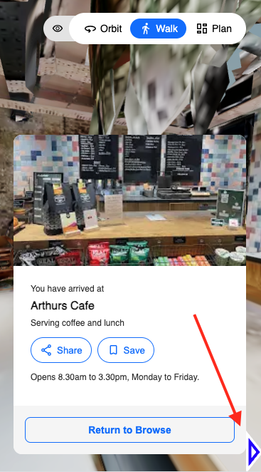 When a user gets close to the landmark, a blue arrow will appear pointing toward the landmark position (not the navigation position), helping them locate the exact item. See the image below that showcases the blue arrow pointing towards the landmark.