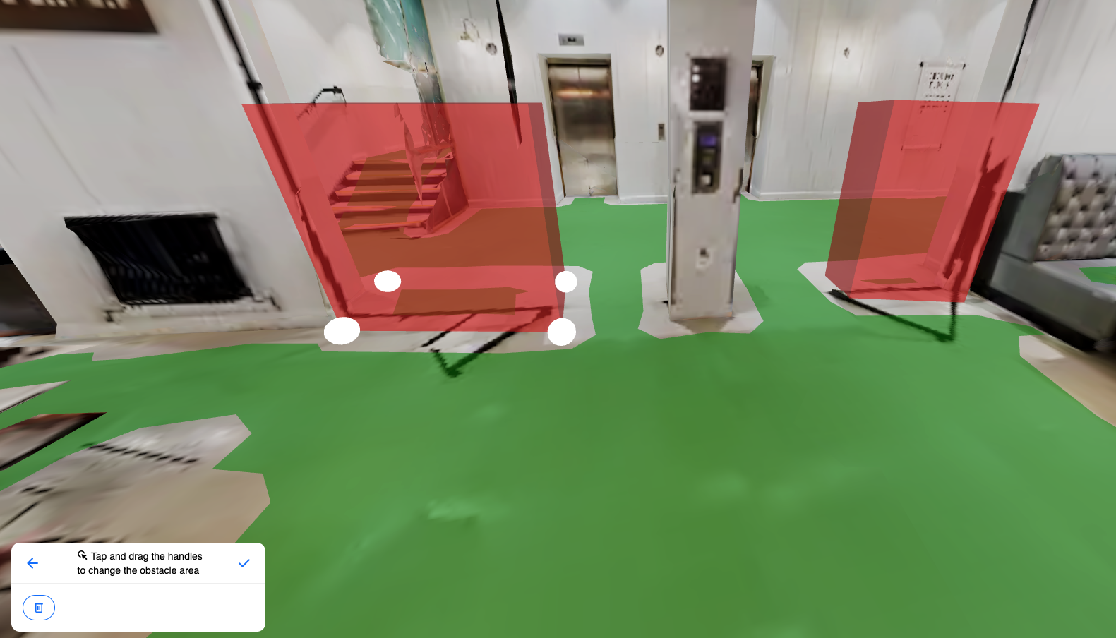 This is particularly useful for features that may not be captured accurately during scanning - for example, glazed partitions or glass doors, which can be partially or fully transparent to scanning technology and may appear as open, walkable space in the map data.